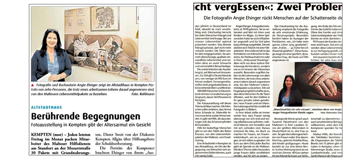 Doch ich erkannte, dass Spenden allein das Problem der finanziellen Abhängigkeit von Frauen nicht verändert. Um das Bewusstsein für Frauen für finanzielle Unabhängigkeit zu stärken, habe ich eine Foto-Reportage über Frauen in Altersarmut fotografiert, die dann als Wanderausstellung gezeigt wurde.