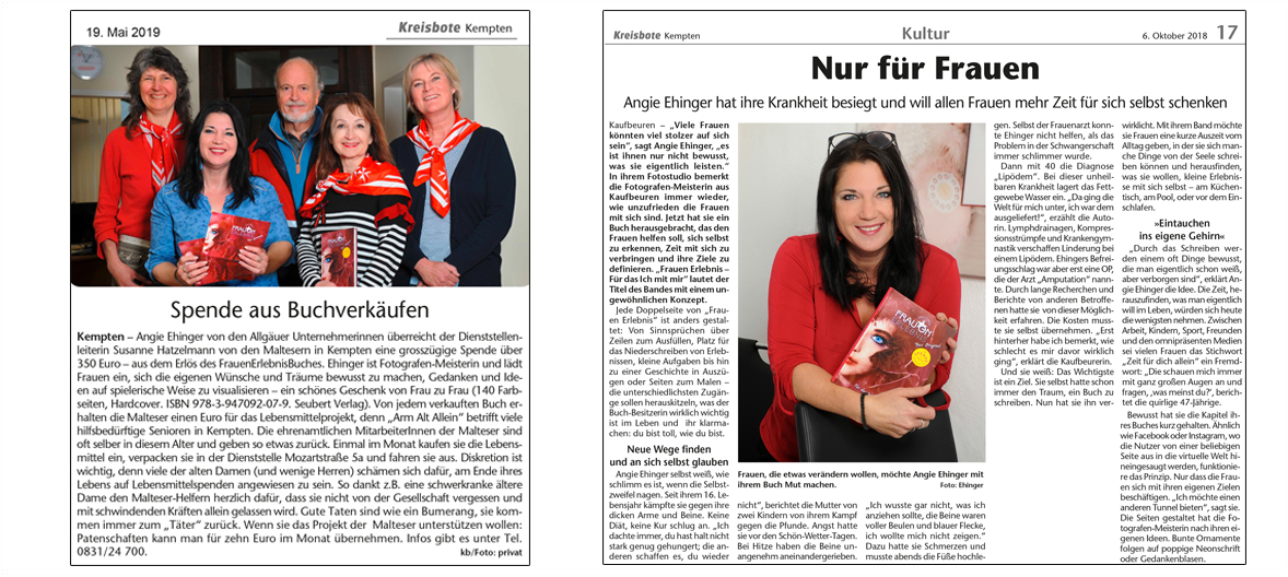 Mit jeder verkauften Ausgabe habe ich einen Euro an Frauenorganisationen gespendet, wie zum Beispiel an die Malteser in Kempten, die vorwiegend Frauen in Altersarmut mit Lebensmittelpaketen unterstützen.